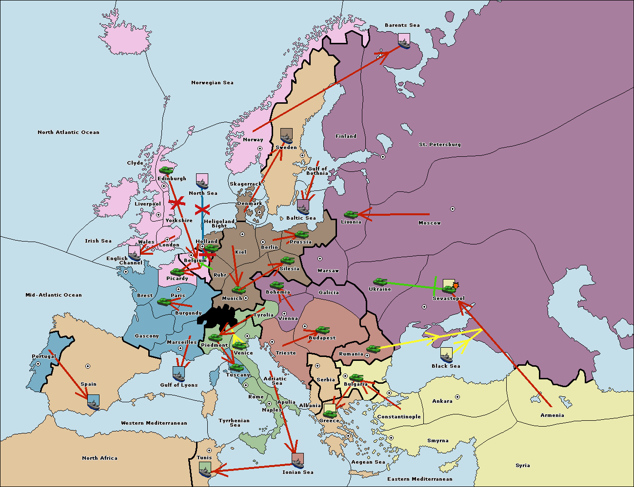 The fleet at Rumania move to Sevastopol.