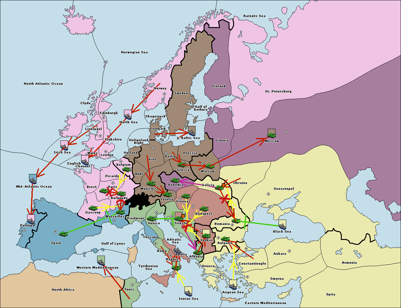 The army at Tyrolia move to Trieste.