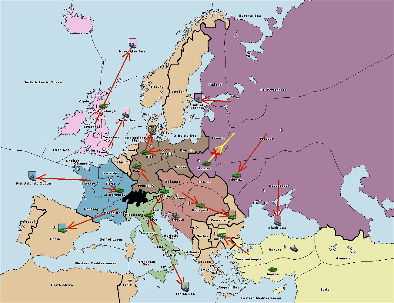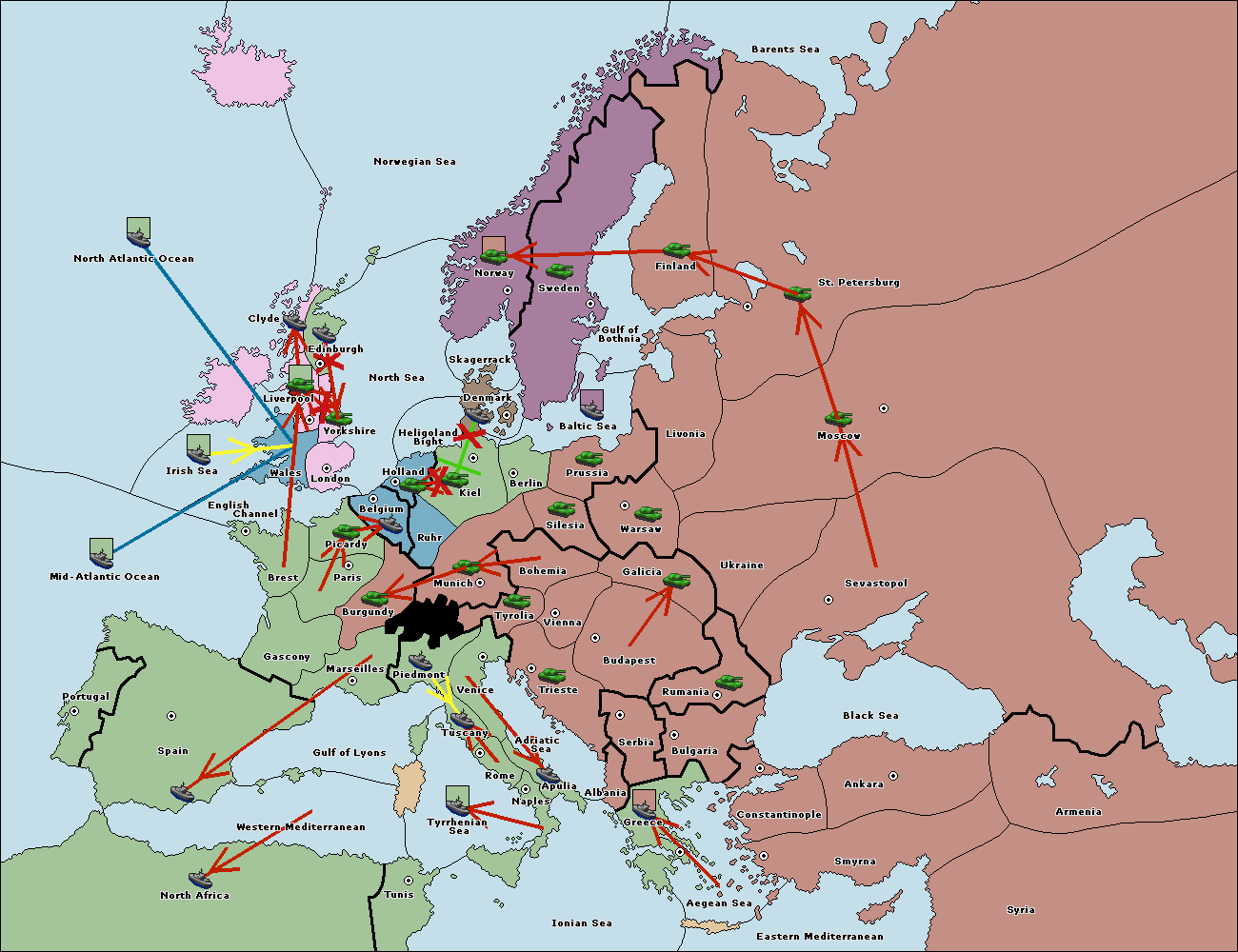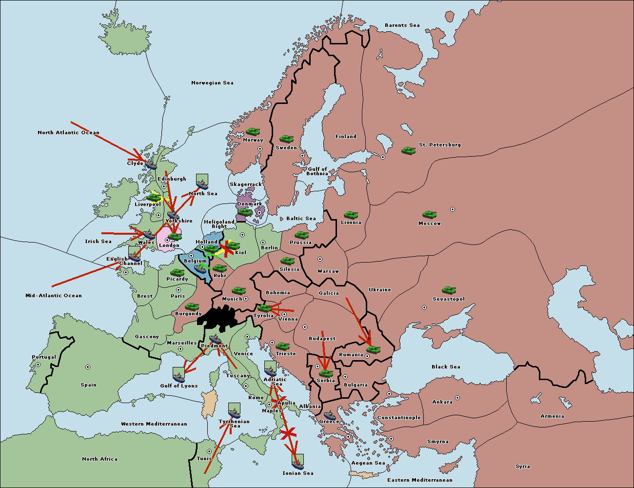 The fleet at Ionian Sea support hold to Adriatic Sea.