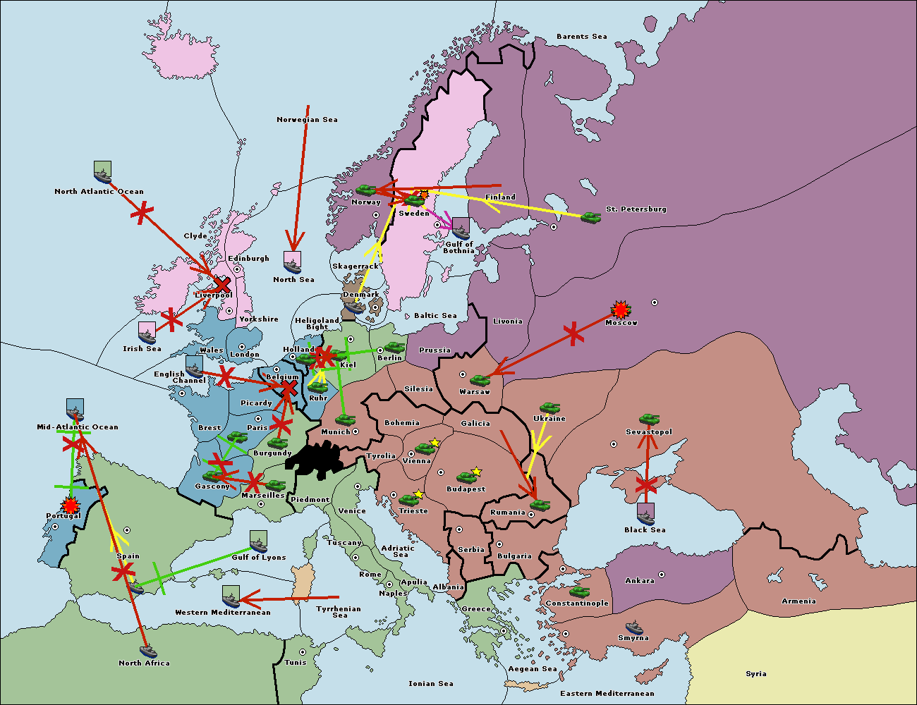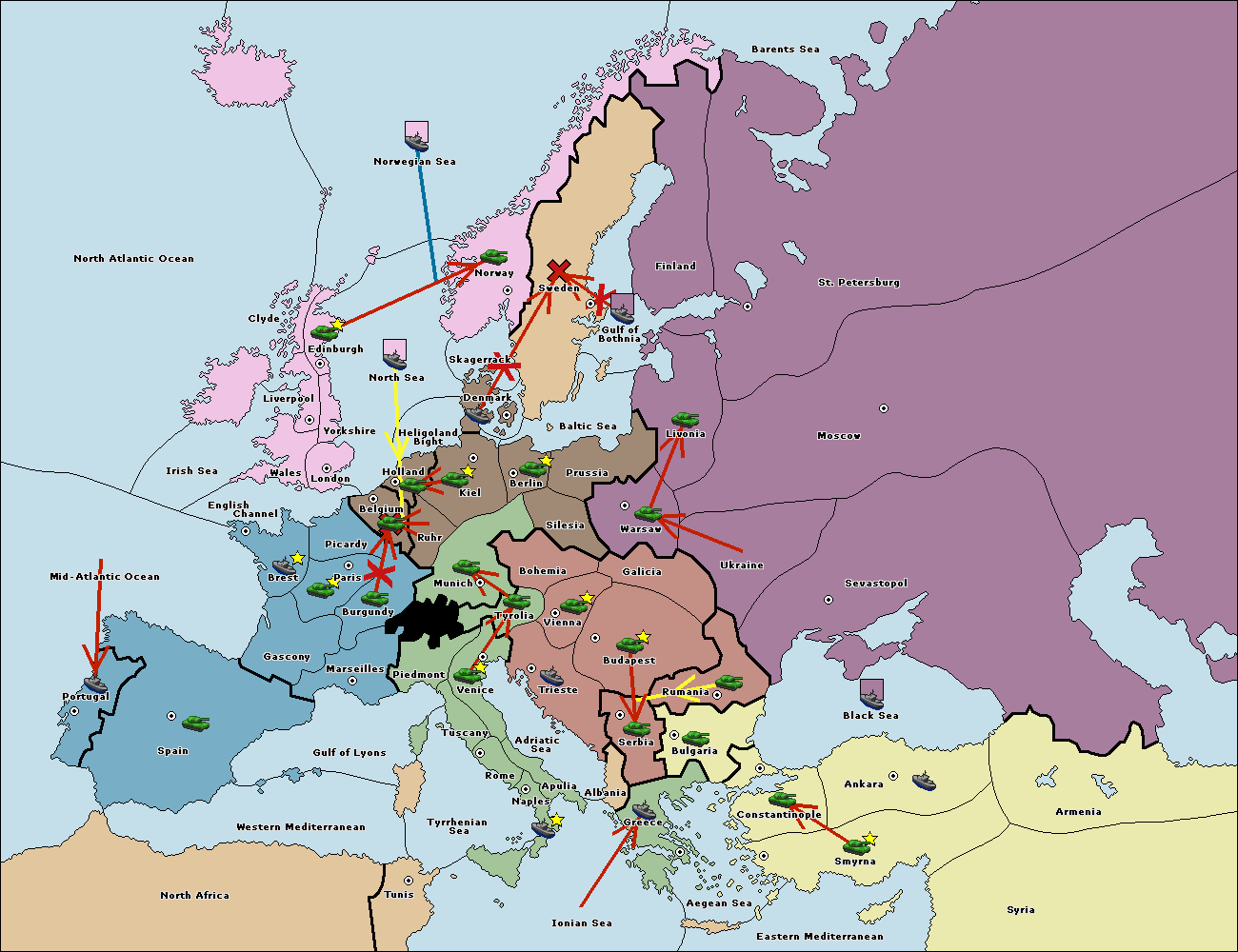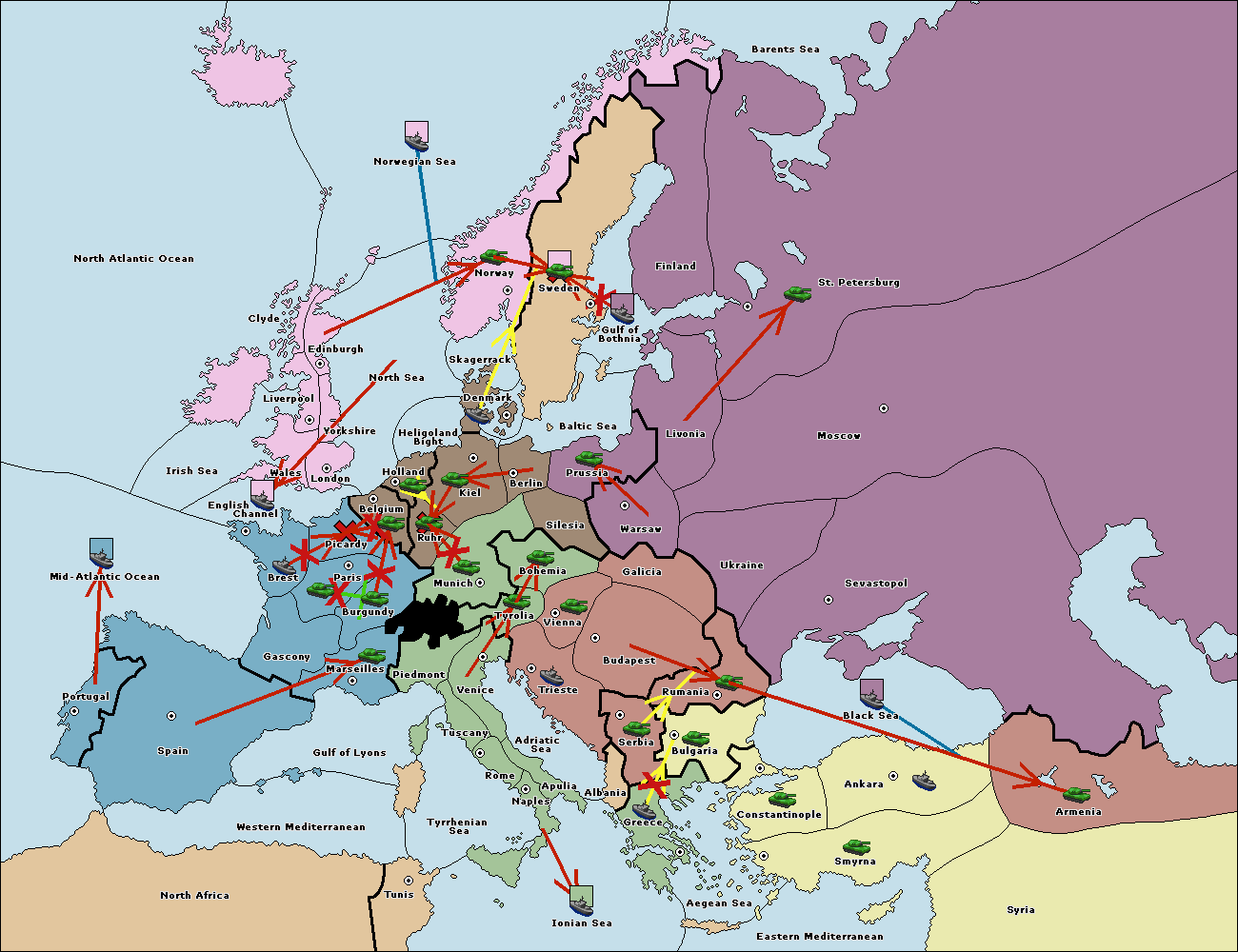The fleet at Ionian Sea support hold to Adriatic Sea.