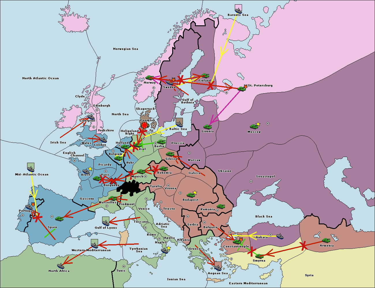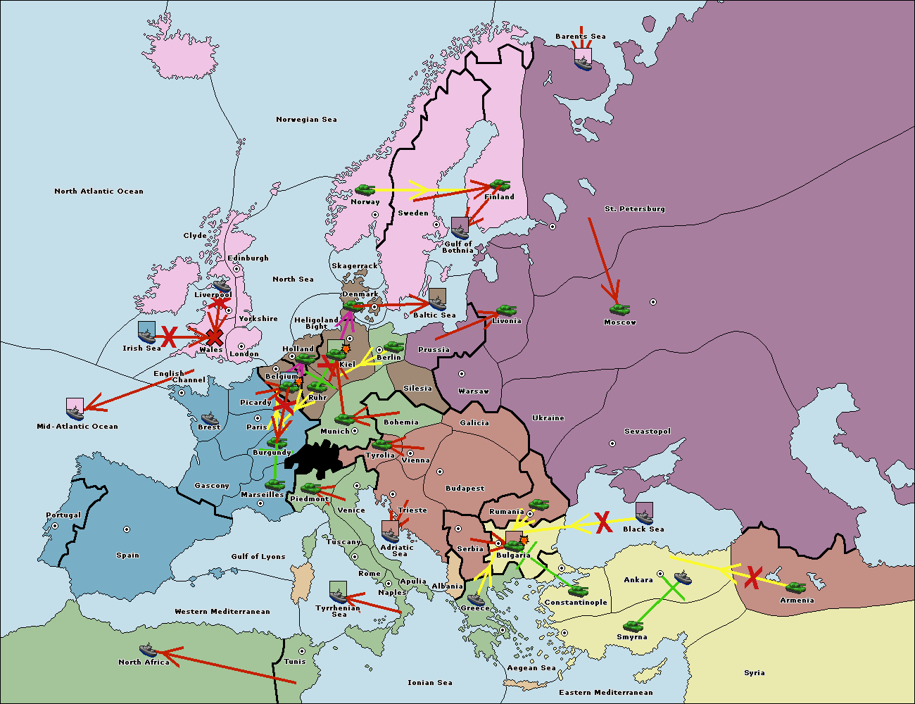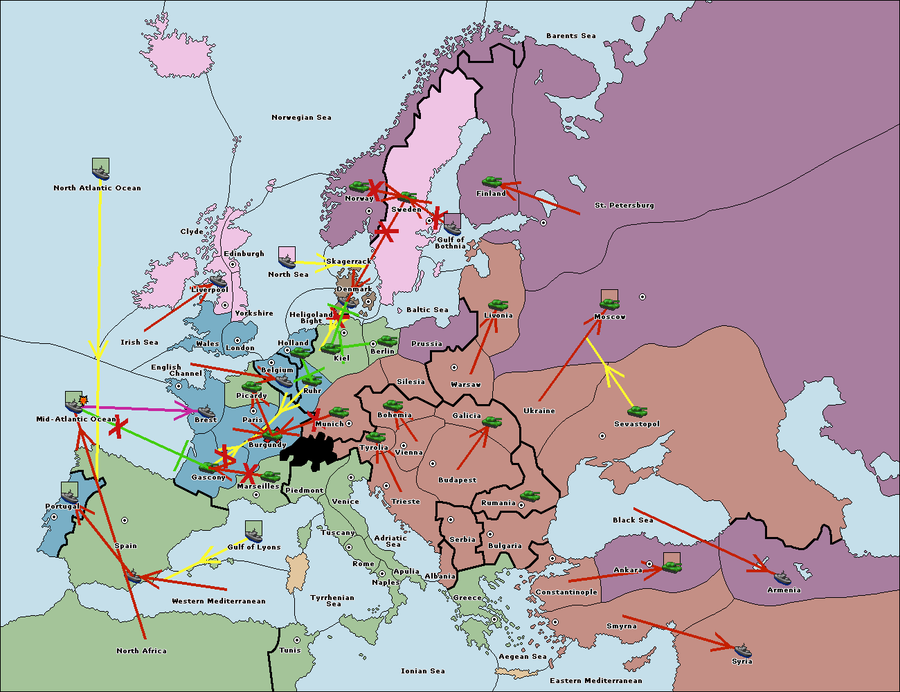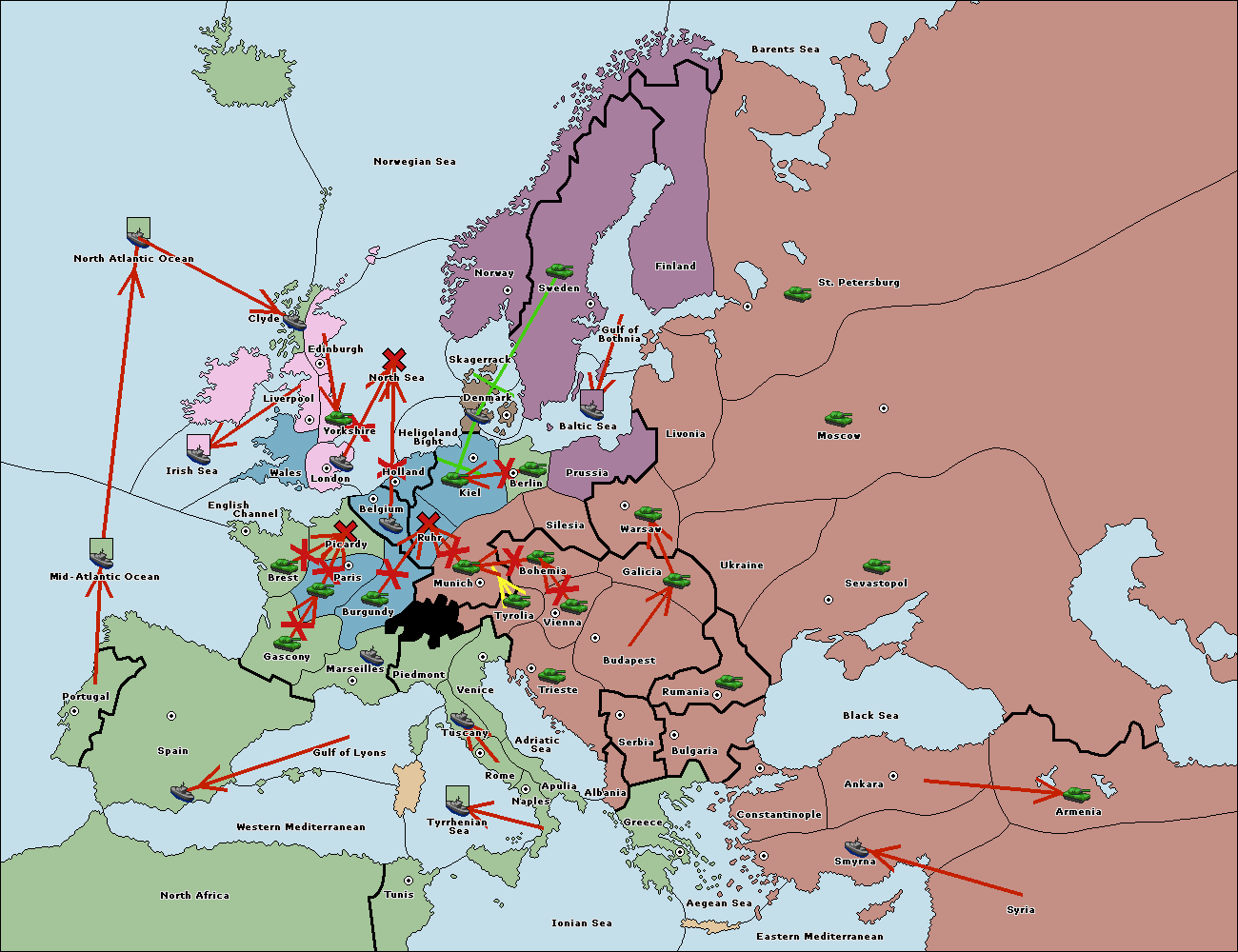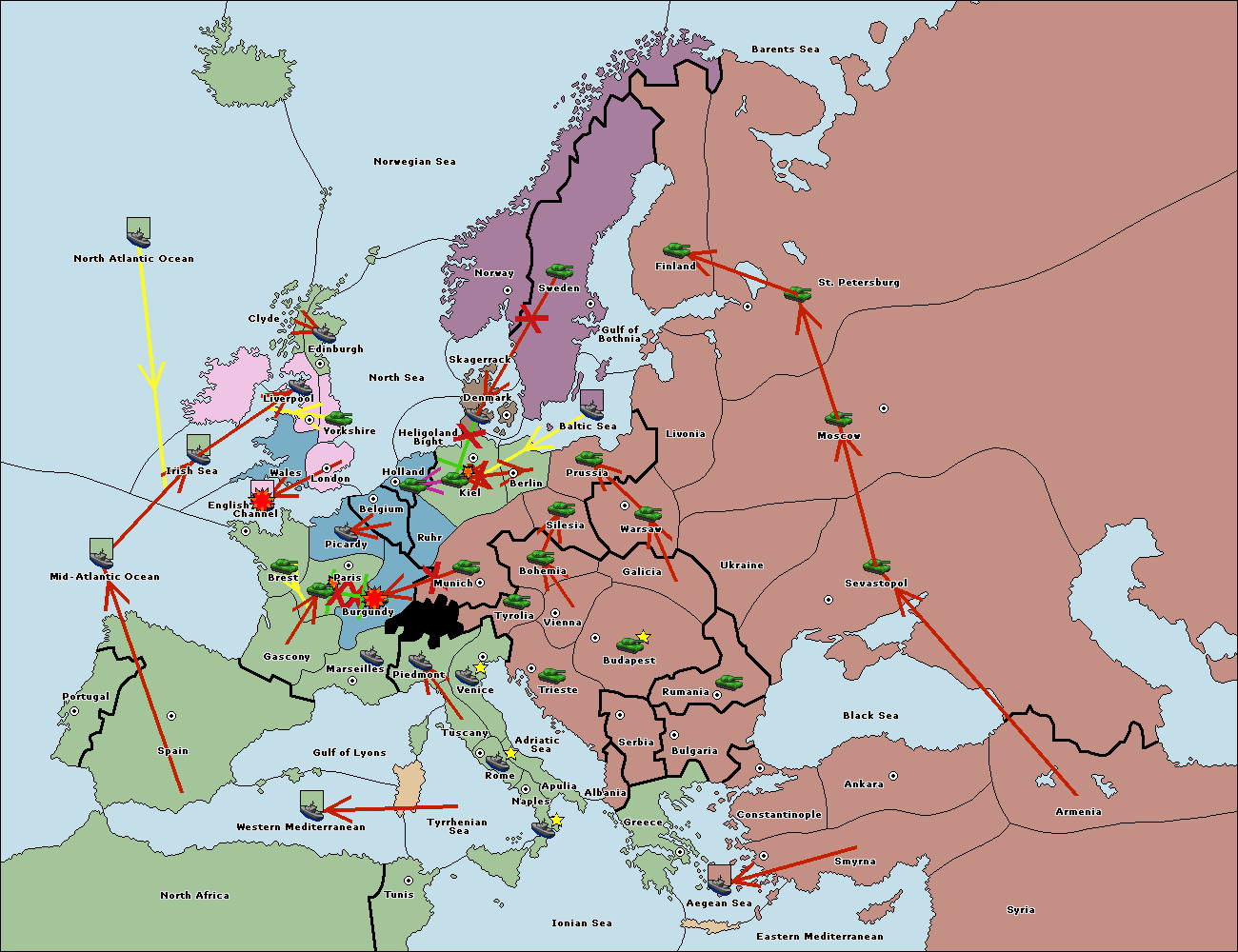 The army at Kiel support move to Munich from Tyrolia.