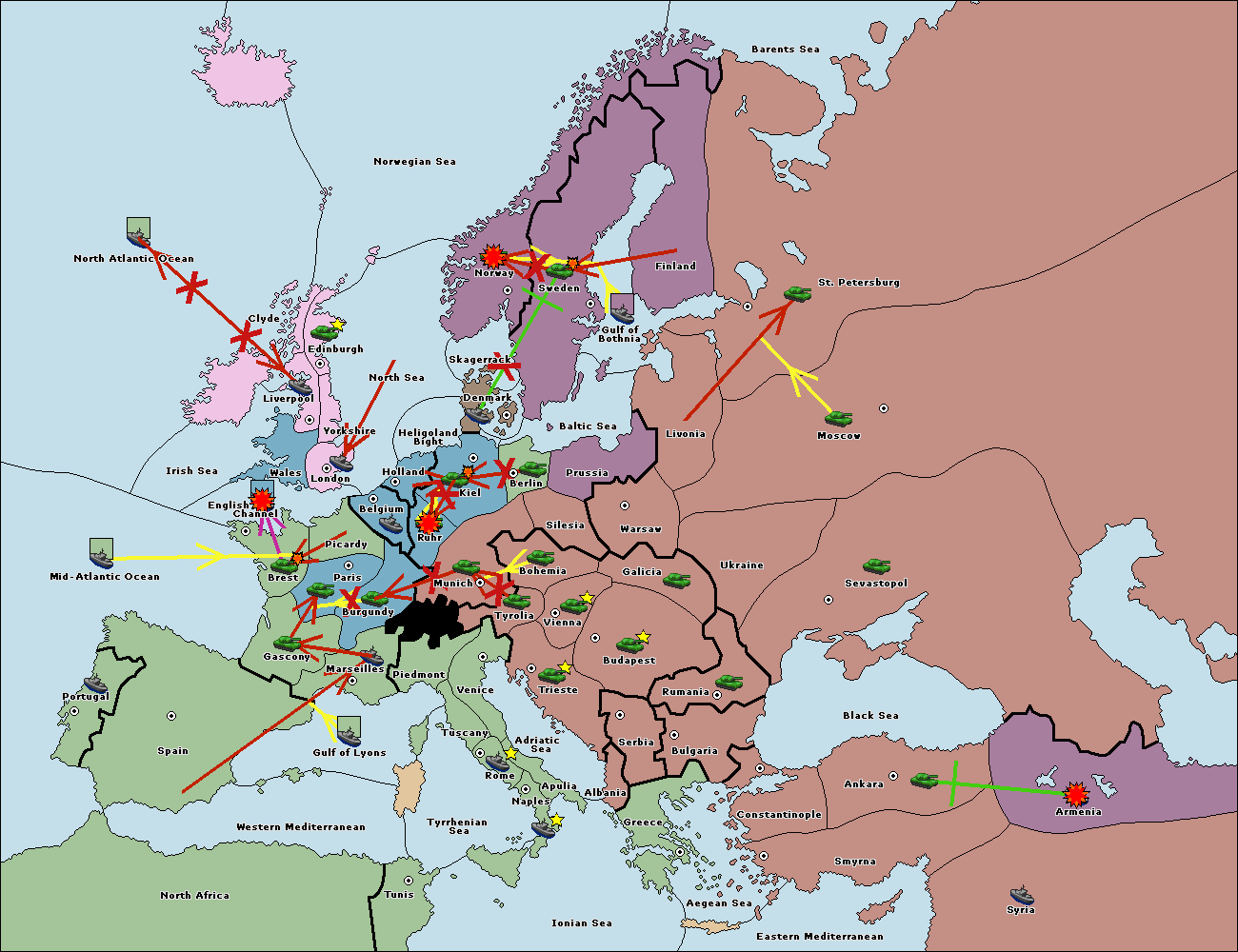 The fleet at Gulf of Lyons support hold to Tyrrhenian Sea.
