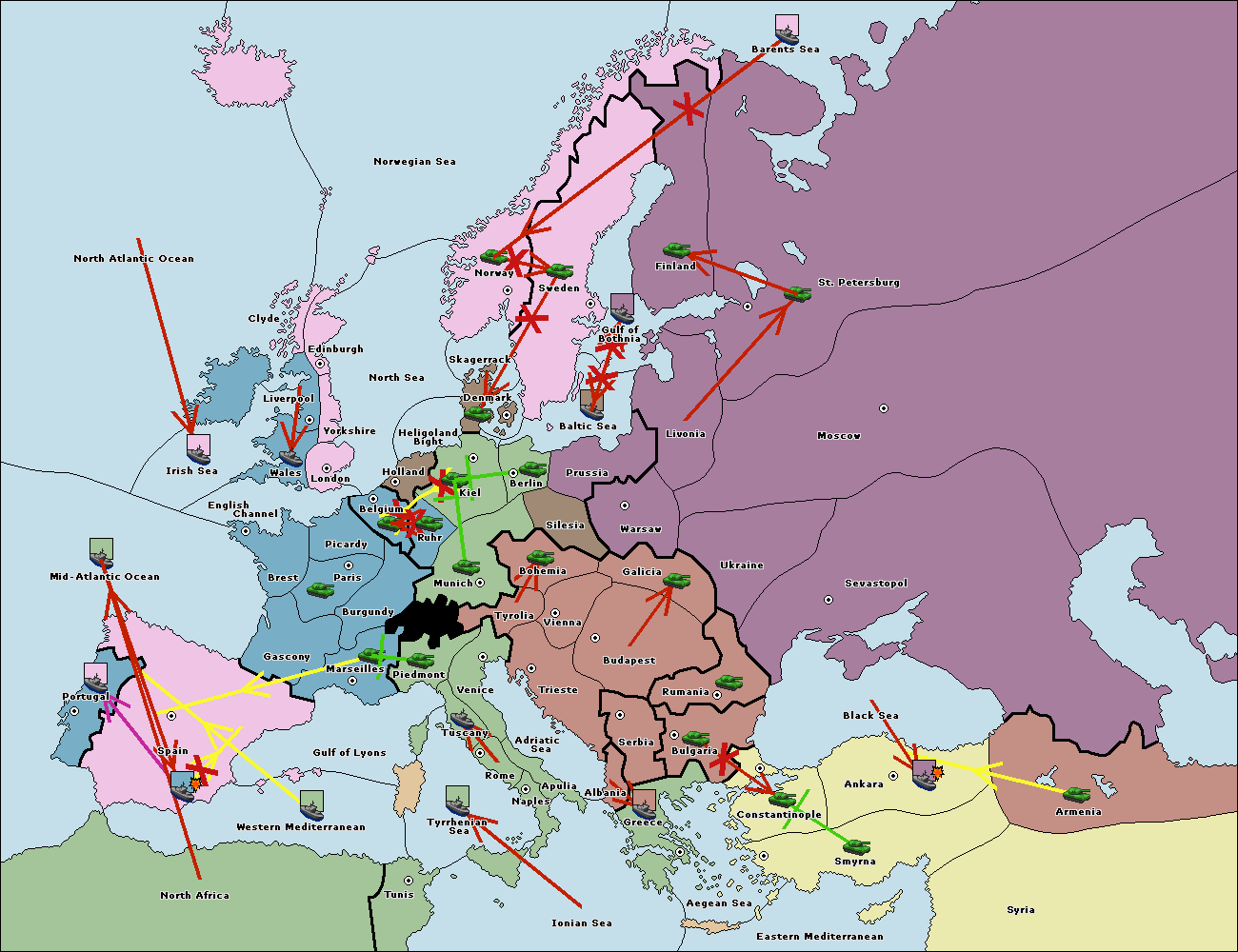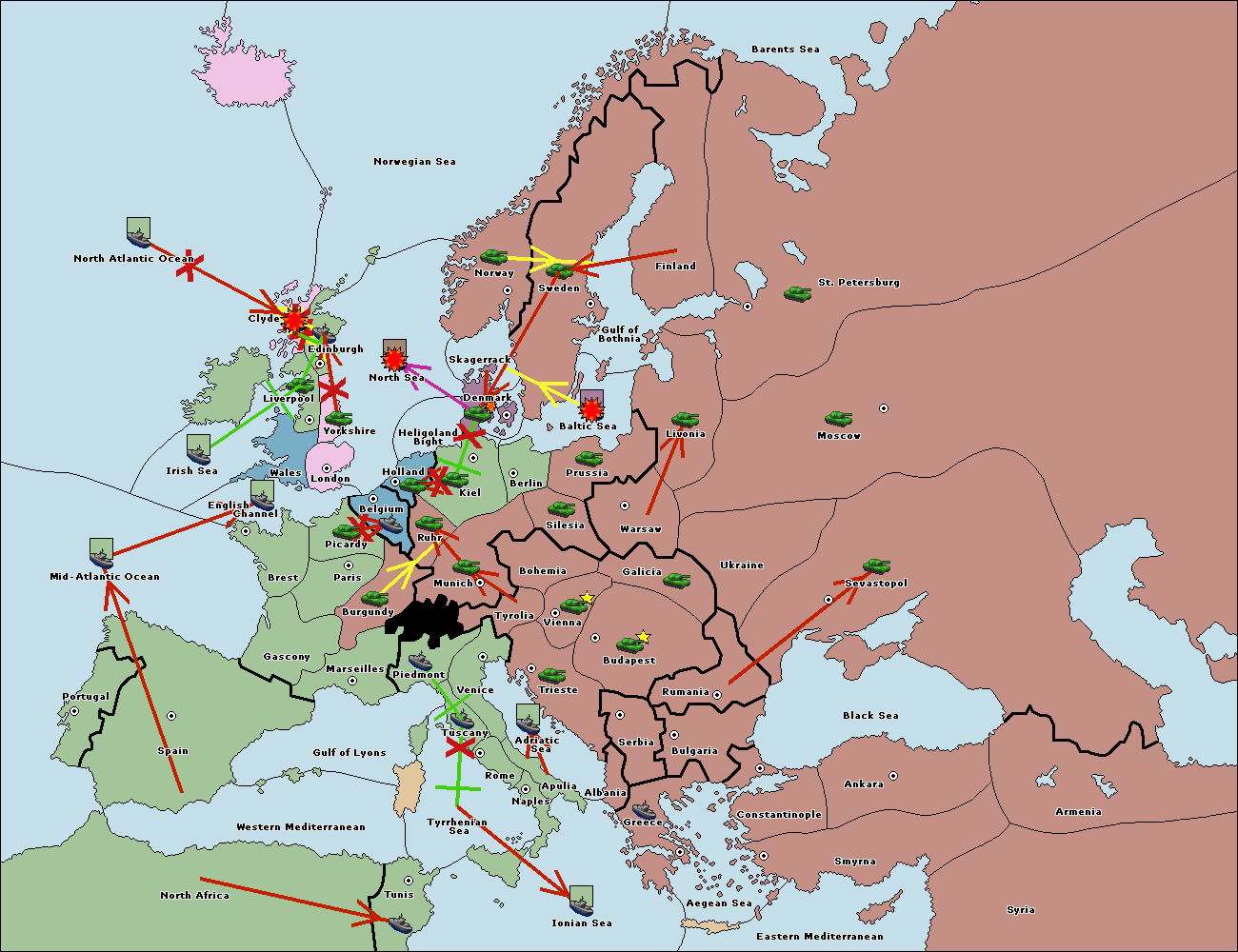 The fleet at St. Petersburg (North Coast) retreat to Barents Sea.